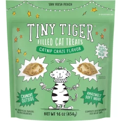 Tiny Tiger Catnip Craze Flavor Filled Cat Treats, 16-oz bag — There’s a treat-loving tiger in all cats, from the tiny to the mighty! Indulge your kitty’s cravings for crunch and taste with Tiny Tiger Catnip Craze Flavor Filled Cat Treats.