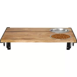 Coziwow Wall Mounted Shelves Set Cat Tree & Frisco Wooden Wall Mounted Stainless Steel Cat Feeding Station With Bowl