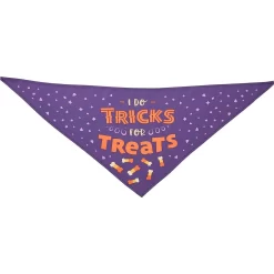 - Dog and cat bandana features adorable “I Do Tricks for Treats” print and illustration.
