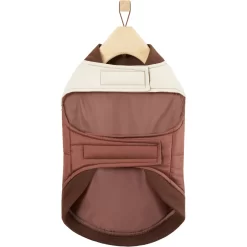 - From Frisco by Chewy. Your furry friend’s style just got a bit bolder with this colorblock puffer jacket.