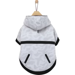 - From Frisco by Chewy. For those rainy walks, treat your pet with this white camo-printed parka that’ll have them standing out instead of blending in.