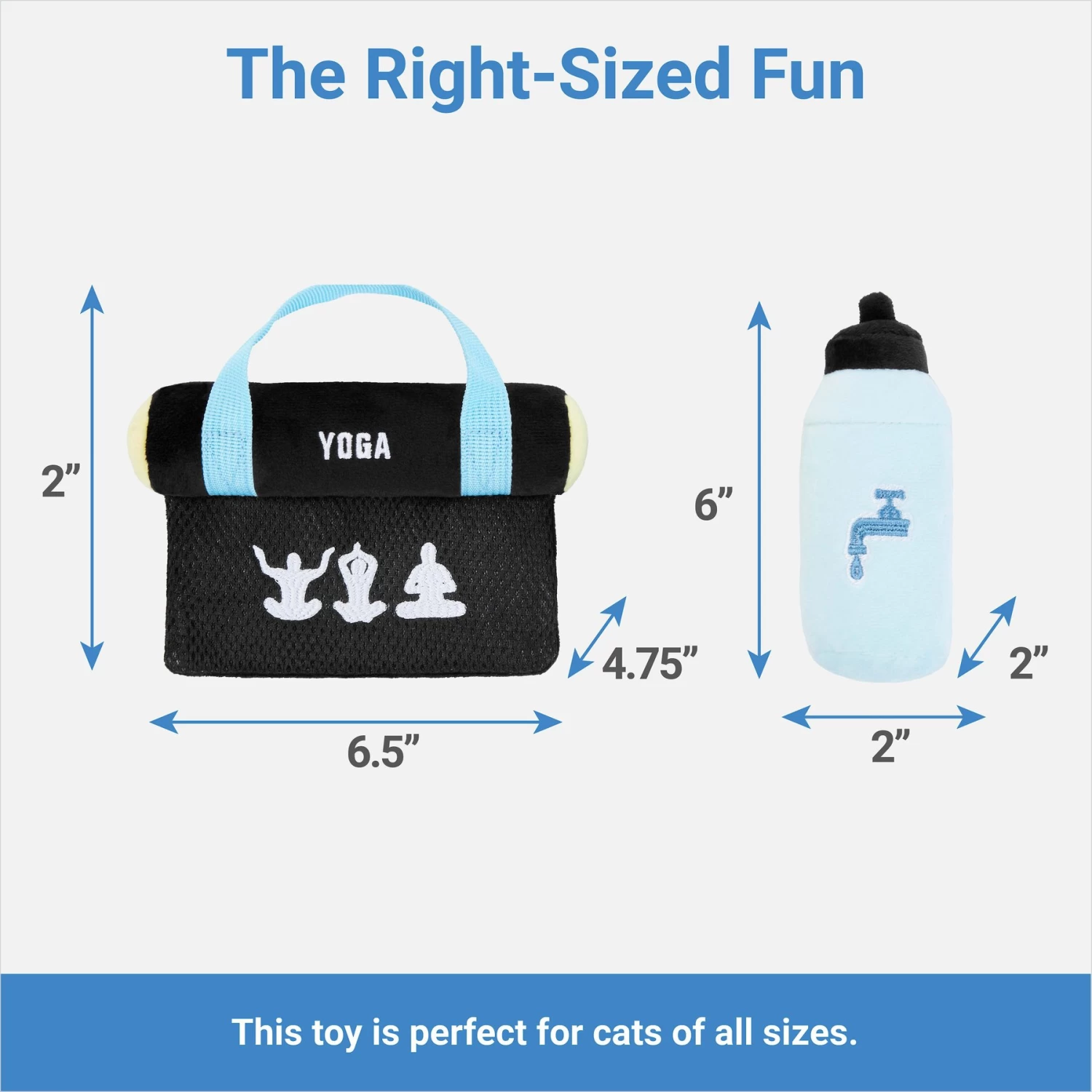 - Yoga mat and water bottle plush toys are perfect for flipping out and chilling out.